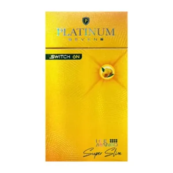 Platinum Seven Switch On Ice Mango (slim) : บุหรี่เย็นๆรสผลไม้ กลิ่นมะม่วง สูบอร่อย ใบยาแน่นๆเกรดพรีเมี่ยม ตัวมวนสลิม นำเข้าจาก Switzerland